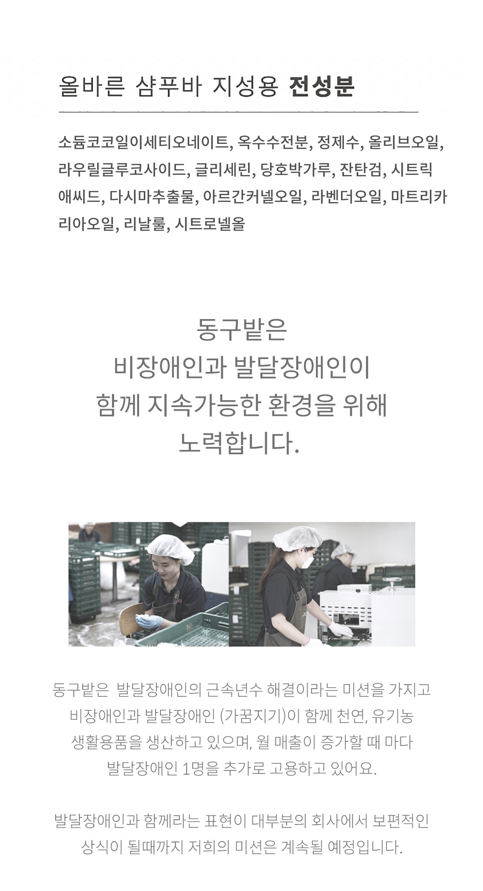 * 동구밭샴푸바는 인공경화제를 쓰지 않아