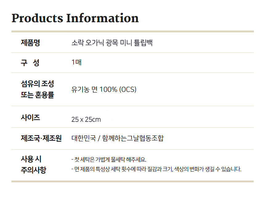 언제 어디서나 실용적인 소락 오가닉 광목 튤립백